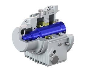 Axialkräfte werden von einer Entlastungsscheibe vollständig kompensiert, sodass kein zusätzliches Axiallager erforderlich ist. Aufgrund der geringeren Kolbenleckage ist die Gesamteffizienz der Pumpe höher als bei der mit Entlastungskolben ausgestatteten Pumpe.