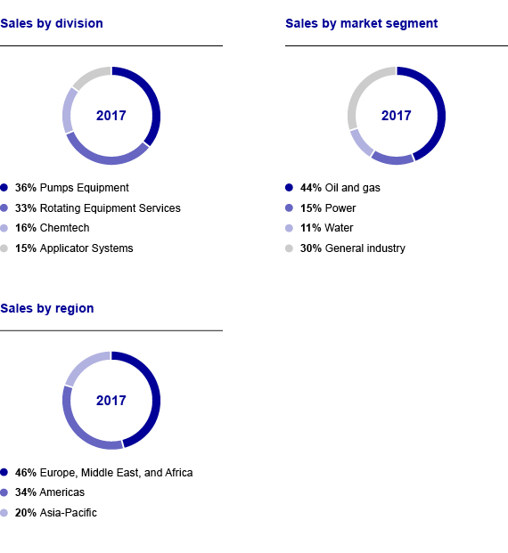 Sales increased by 3.7% on a currency-adjusted basis, whereas they decreased by 6.7% organically compared with the same period of the previous year. The organic decline is due to decreasing sales volumes from the oil and gas market in the Pumps Equipment division. Operational EBITA increased on a currency-adjusted basis and remained stable organically. Despite lower organic sales volumes, the operational EBITA margin (opROSA) increased to 7.4% from 7.1% in the first half of 2016.