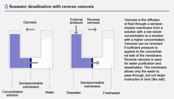 La desalación de agua de mar es un modo importante de suministrar agua dulce de forma sostenible. Aunque el agua dulce y limpia tiene distintos usos, como los procesos industriales y agrícolas, el 60 % es para el consumo humano. Puesto que la energía es el mayor gasto para las plantas de desalación, las empresas buscan soluciones que ahorren energía.