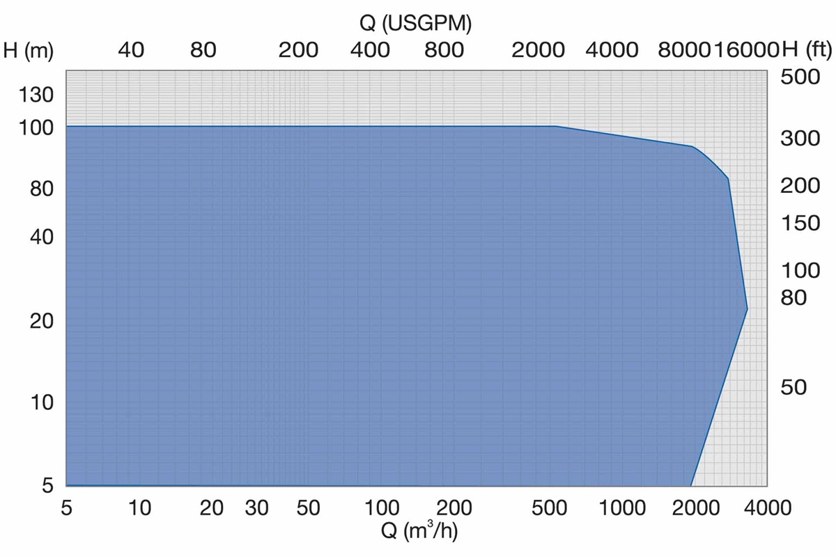 | Caudales | hasta 3’500 m3/h / 15’500 USgpm |