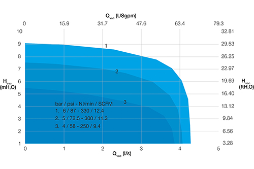 Tyhjöstyskapasiteetti enintään 4,4 l/s jopa 70 USgpm