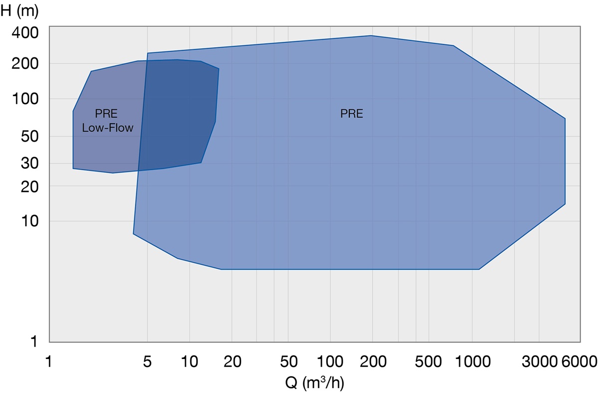 * PRE 泵的性能范围。较小的尺寸可能不适合强化型产品。